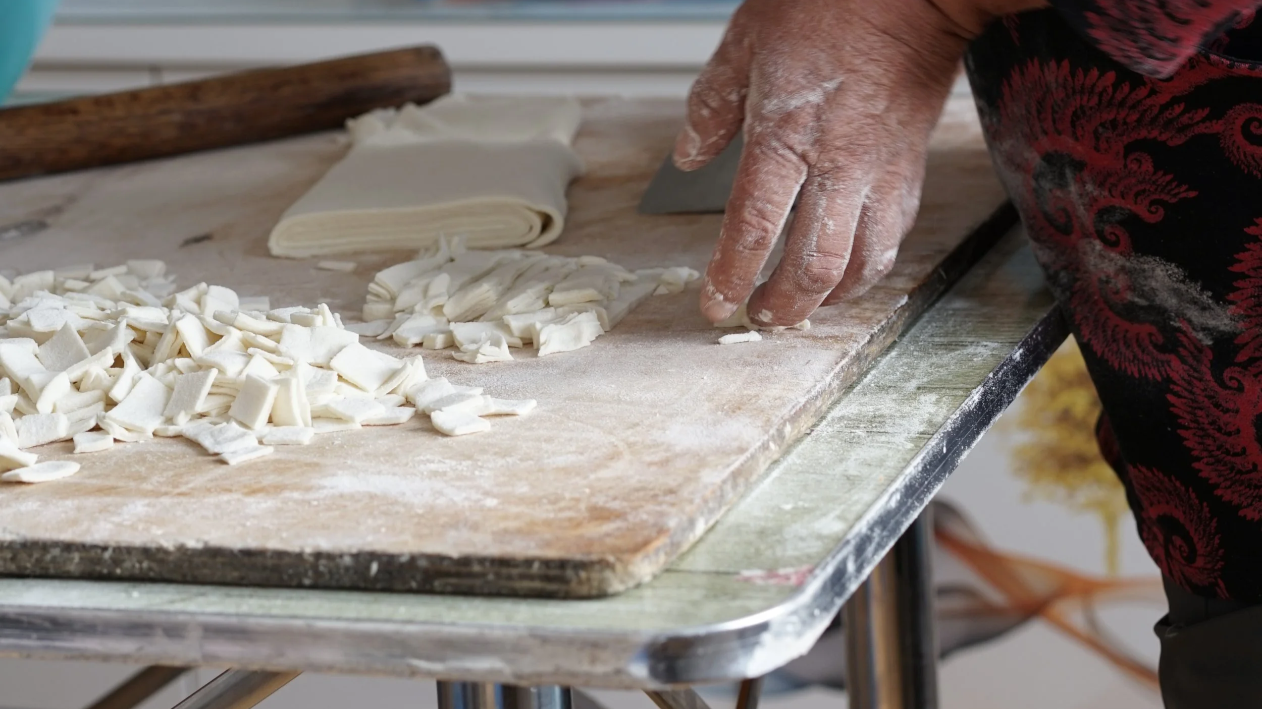 小麦粉を水で練った生地を伸ばして裁断したパスタ。