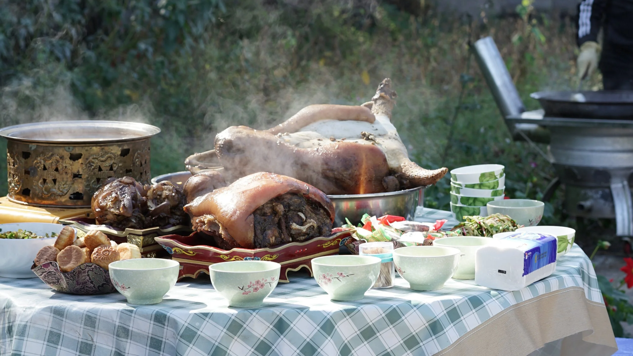 牛の頭を醤油ベースの調味液で長時間煮込んだ料理。下ごしらえに1日、調理に1日かかる“時短”の真逆を突き進むメニューです。